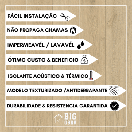 Em até 4x de R$ 11,73 sem juros À vistaR$ 44,56no PixPiso Vinílico Colado 3mm, Capa de proteção 0,3mm – Formato 17,7×121,9cm – Uso Residencial e Comercial – Patina
