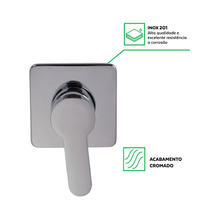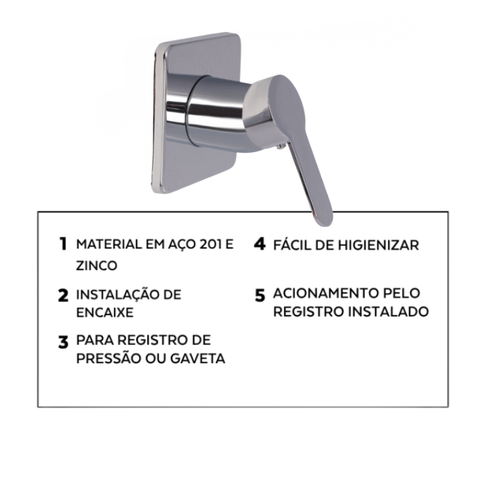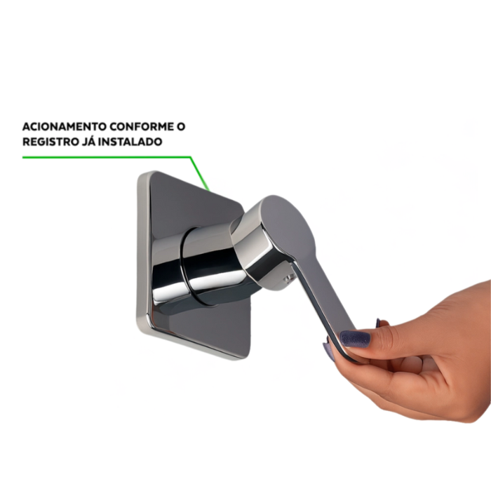 Desenvolvido para compor a linha de misturadores e registros, o acabamento permite o acionamento prático e confortável do sistema hidráulico, complementando o conjunto com elegância e segurança.