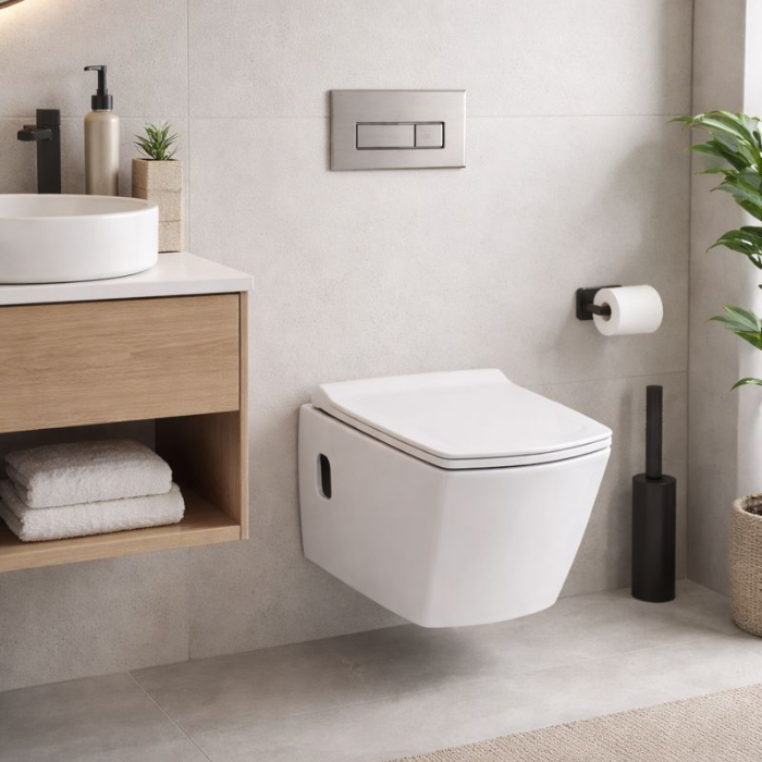 Bacia Suspensa Big Obra Sifônica Rimless Rettangolare Branca com Assento