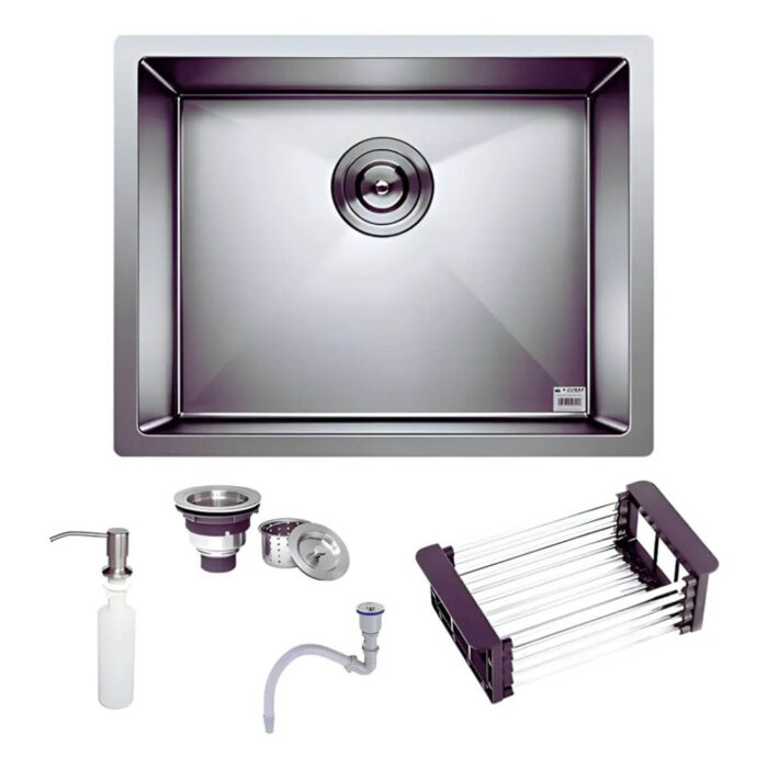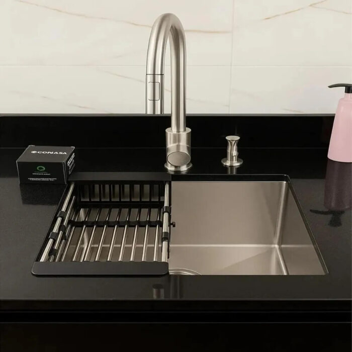 Cuba em Aço Inox 201 Square Black Gourmet com Torneira, cascata, lavador de copos e acessórios (680x450x220mm) Big Obra