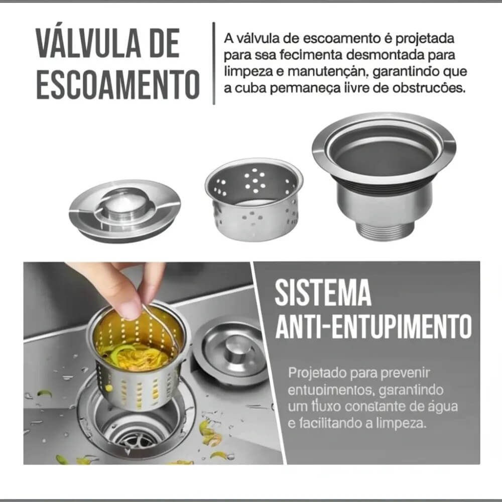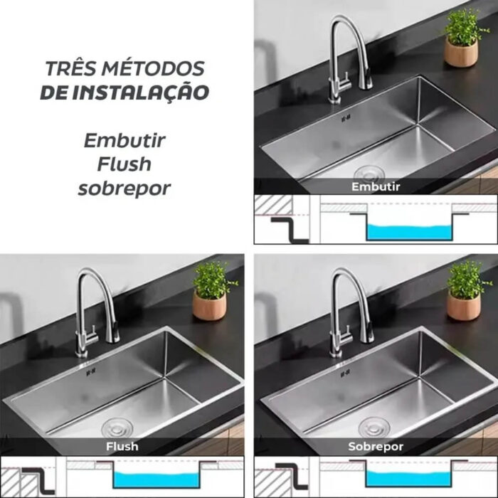 ✅ Design Moderno: Opções de cubas simples, duplas e triplas, com acabamentos escovado ou polido, combinando elegância e funcionalidade para qualquer ambiente.