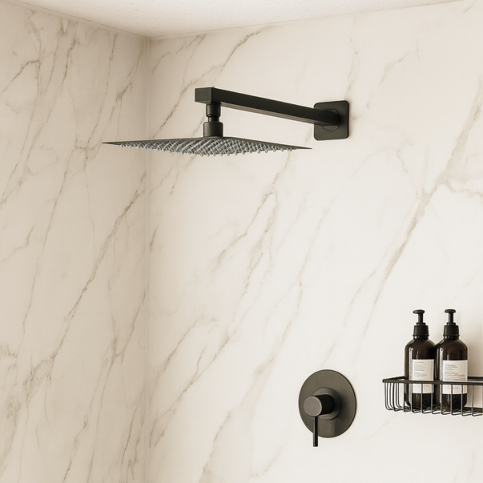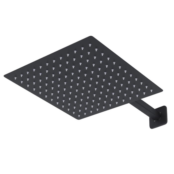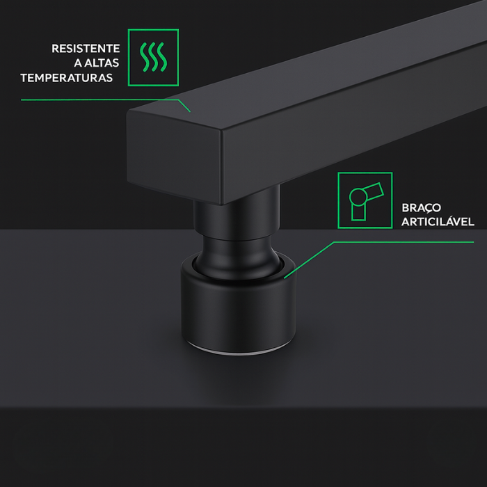 Ducha Chuveiro 20x20cm Com Braço Reto 40Cm Aço Inox 304 Preto
