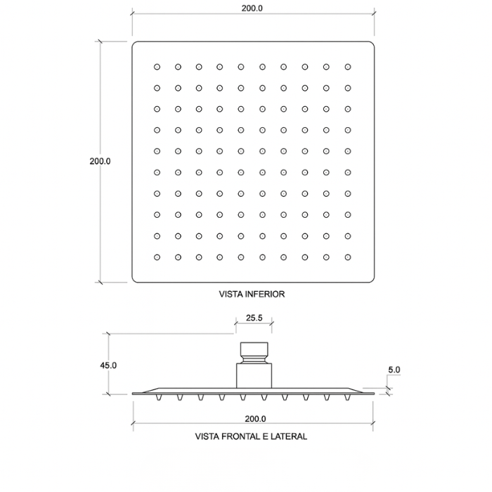 Medindo 20 x 20 cm, em aço inoxidável 304, e acabamento triplo de alta resistência à corrosão, sua beleza e características originais são conservadas por muito mais tempo.
