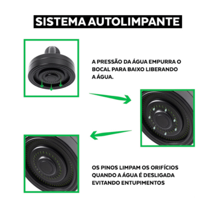 Ducha Chuveiro Autolimpante Acqua Clean Redondo de Parede Longo Preto Inox 201