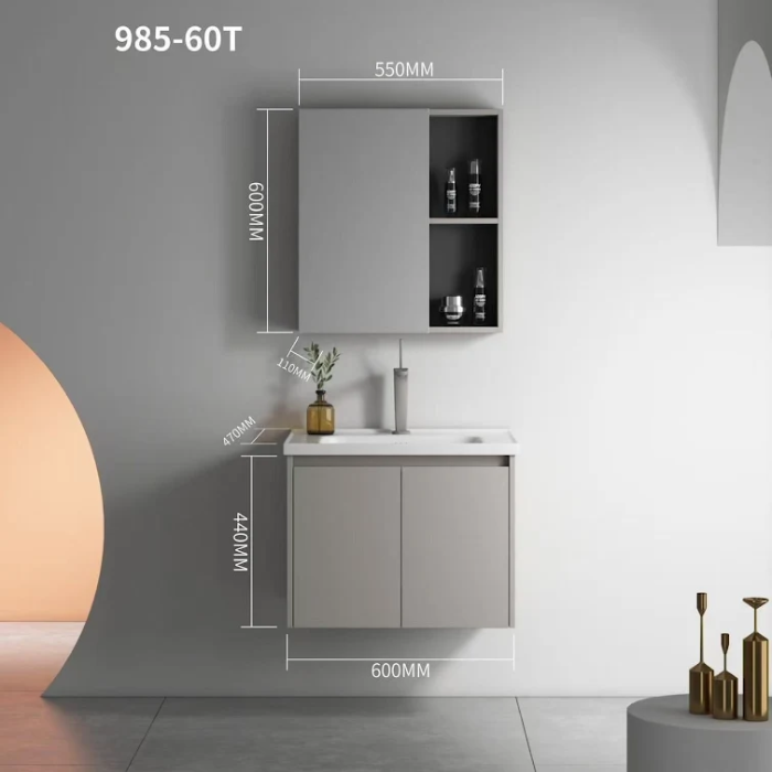 Gabinete suspenso com acabamento acetinado em tom neutro, perfeito para ambientes sofisticados e atemporais.