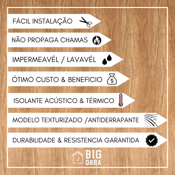 Instalação Fácil e Rápida: Não requer o uso de cola adicional. Basta posicionar e pressionar o piso para uma aplicação prática e sem complicações. Transforme qualquer ambiente em questão de horas!