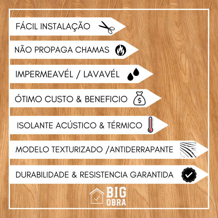 Seja para renovar ambientes residenciais ou comerciais, o Piso Vinílico Autocolante BigObra é a escolha certa. Com espessura de 1,5mm e uma robusta capa de proteção de 0,15mm, ele combina a estética sofisticada com alta resistência. Isso significa que você terá um piso que se mantém bonito e funcional por muito mais tempo, mesmo em áreas de alto tráfego.