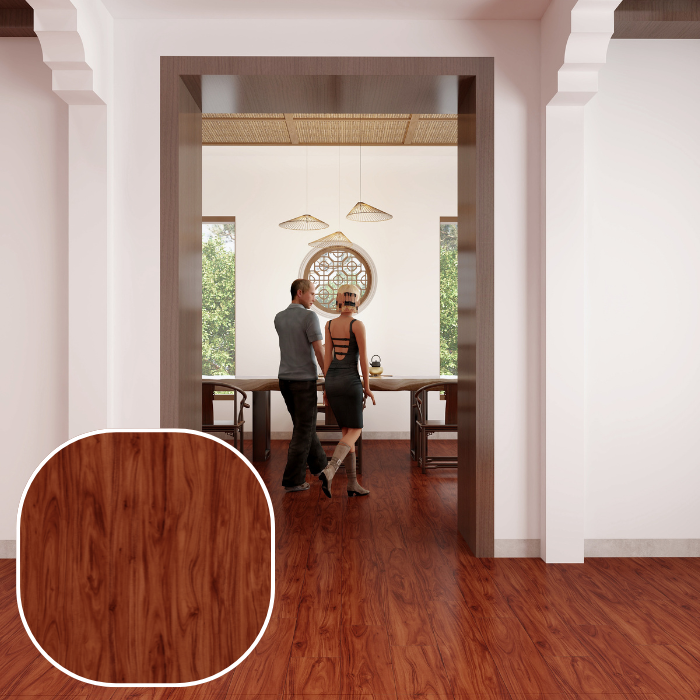 Piso Vinílico Colado 3mm, Capa de proteção 0,3mm – Formato 17,7×121,9cm – Uso Residencial e Comercial – Imbuia
