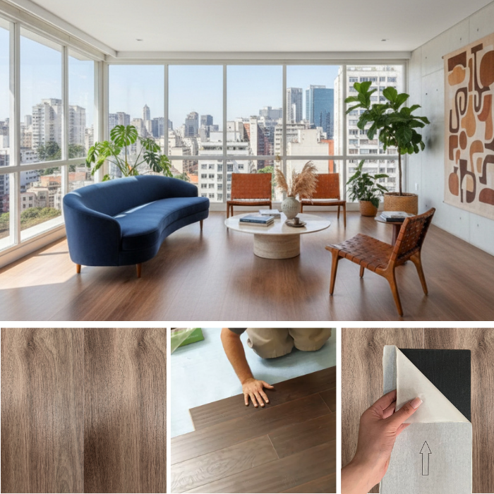 - Instalação Fácil e Rápida: Não requer o uso de cola adicional. Basta posicionar e pressionar o piso para uma aplicação prática e sem complicações. Transforme qualquer ambiente em questão de horas!