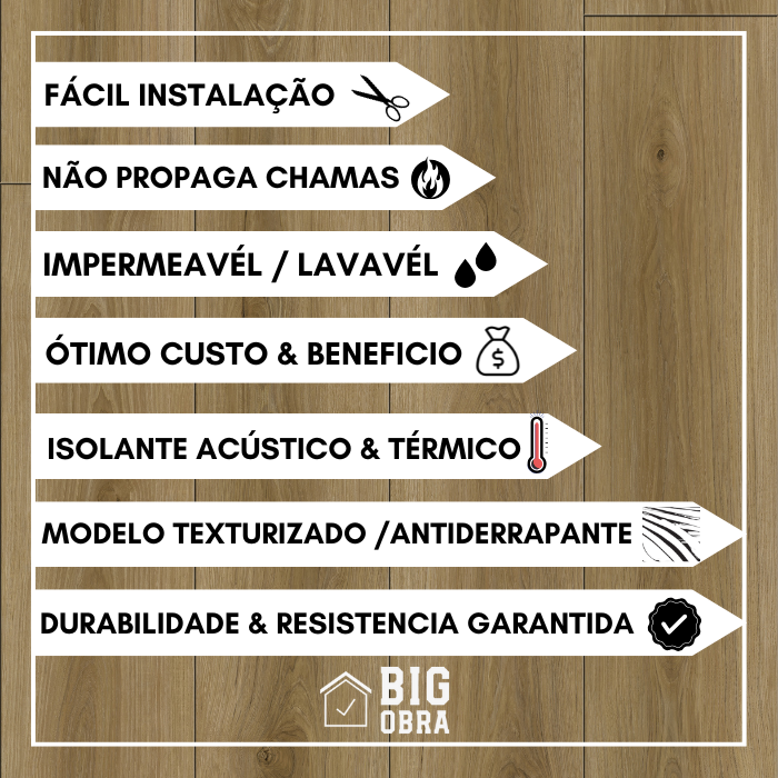 • Resistência Extra: A camada protetora de 0,3mm protege contra arranhões e desgaste, preservando o piso como novo por mais tempo.