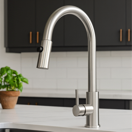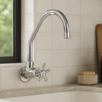Fabricada em ABS de alta resistência e com um acabamento cromado prateado extremamente brilhante, a torneira garante durabilidade, fácil limpeza e um visual sofisticado. Seu design elegante, com bica alta e curva em formato de “pescoço de ganso”, amplia a área de uso na pia, enquanto o manípulo em formato de cruz proporciona controle preciso e suave do fluxo de água. Além disso, a instalação na parede libera espaço na bancada, trazendo praticidade e um toque estético mais limpo ao ambiente.